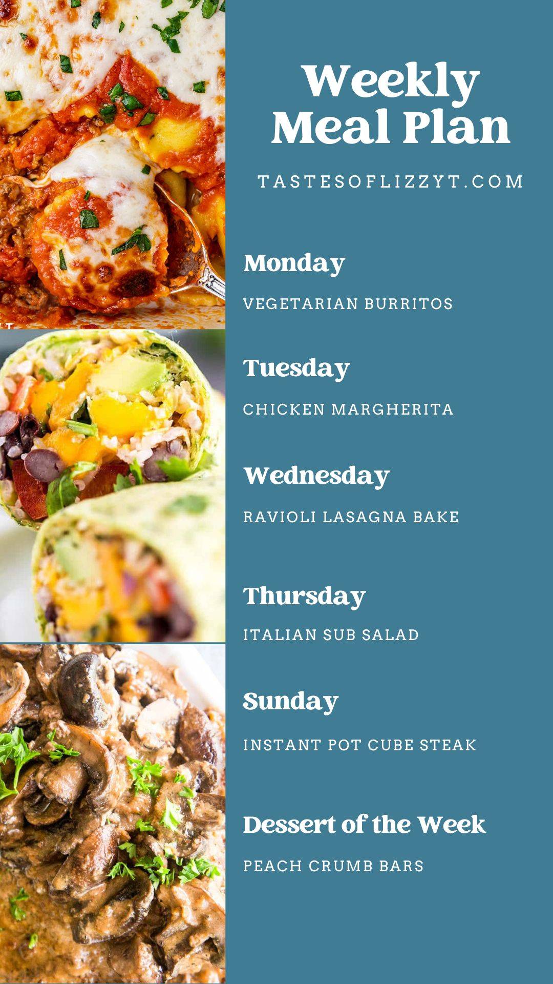 Hello [FIRST NAME GOES HERE], It's the last week of June already. Hard to believe, right? You'll love the recipes I have for you this week. I'm partial to the vegetarian burritos. I'll be meal prepping these in advance so I can eat them throughout the week for lunch. And if you've got fresh peaches, try the buttery peach crumb bars. The crust is the same as the topping! Monday: Vegetarian Burritos Tuesday: Grilled Chicken Margherita Wednesday: Ravioli Lasagna Bake Thursday: Italian Sub Salad...